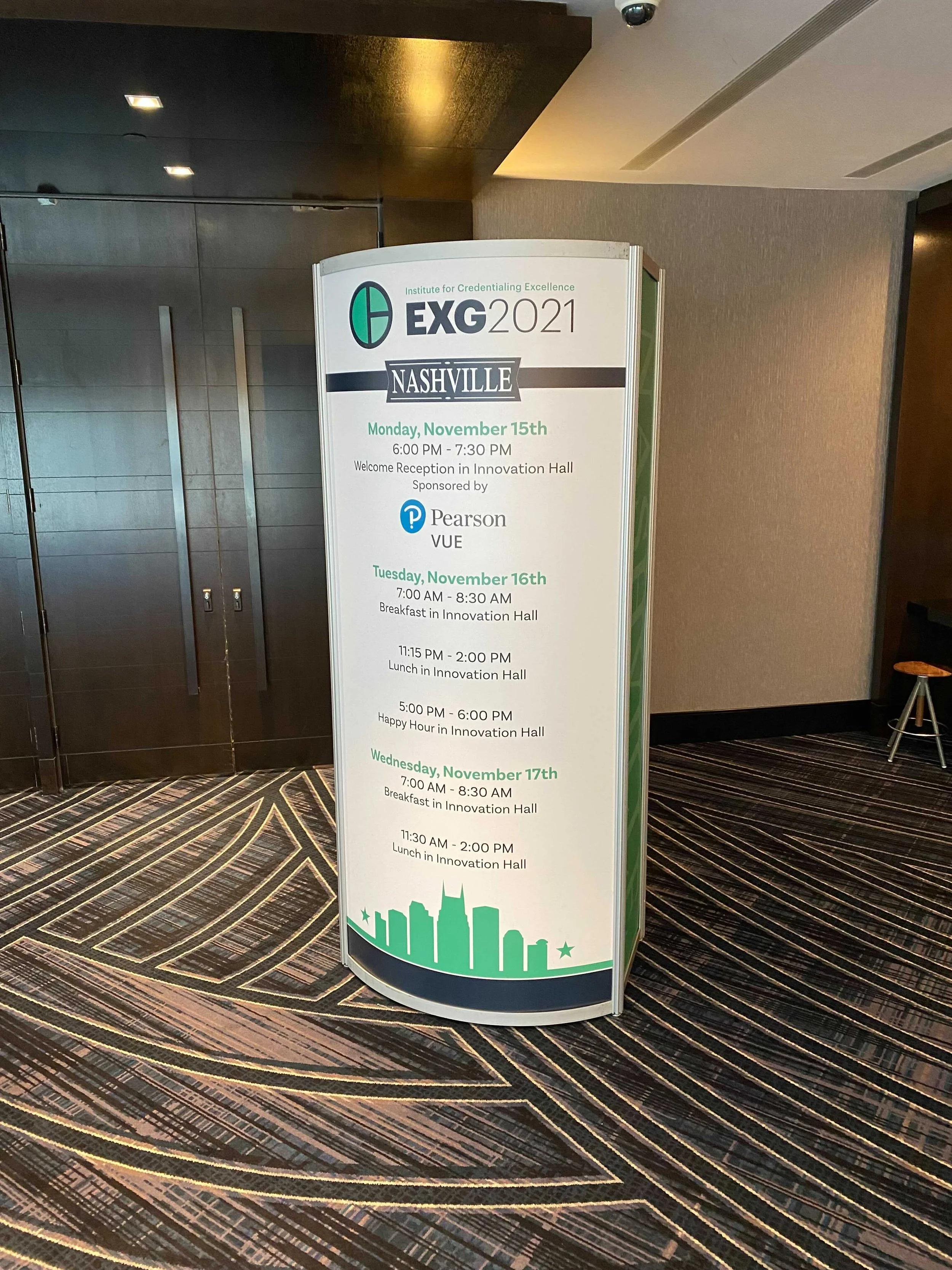 Now, it was time for the real conference prep! The team and I headed to the Registration booth, where we had a seamless sign in with an extremely friendly welcome group. It was super comforting to have my CLEAR (vaccine confirmation) passport checked knowing that I.C.E. was ensuring everyone’s safety. We were then thrilled to know all of our booth materials made it to Nashville (you never know with shipping your booth across the country). Set-up was quick and painless between the clear instructions from I.C.E. about specifics for our booth’s location, our teamwork, and a Venti Americano.